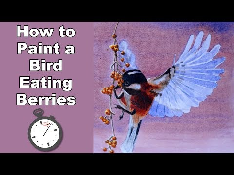 How to Paint a Bird Eating Berries in Watercolor Time Lapse